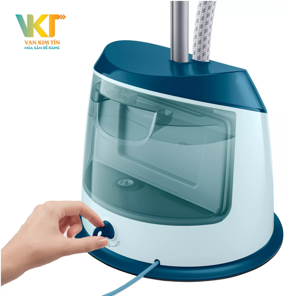 Bàn ủi hơi nước đứng có chức năng khử cặn Easy De-Calc giúp khử sạch cặn trong bình chứa. Đảm bảo nước phun ra luôn sạch sẽ, tinh khiết, bảo vệ quần áo và kéo dài độ bền cho sản phẩm.