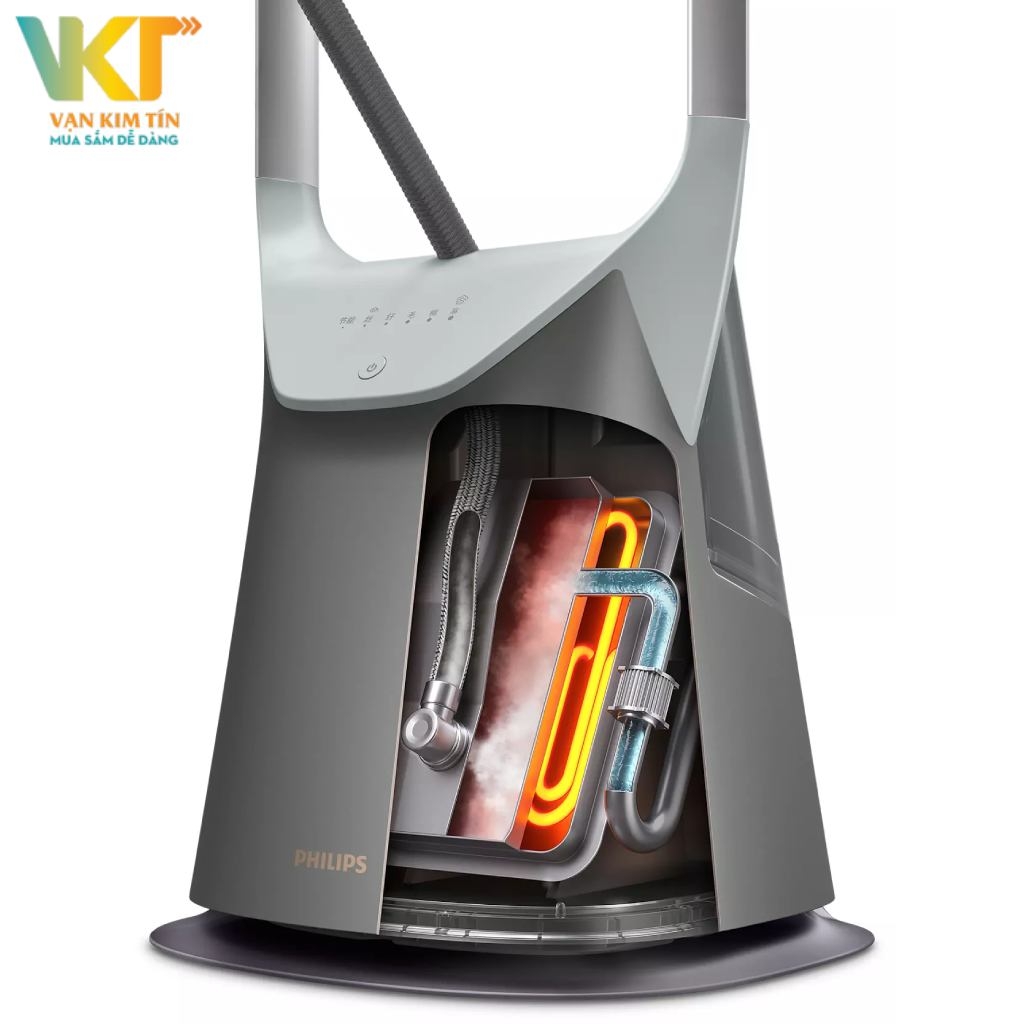 Bảng điều khiển với nhiều mức phun hơi tuỳ theo chất liệu từng loại vải. Sử dụng chế độ hơi phun thấp cho loại vải mỏng và hơi phun mạnh hơn cho vải dày và áo khoác.