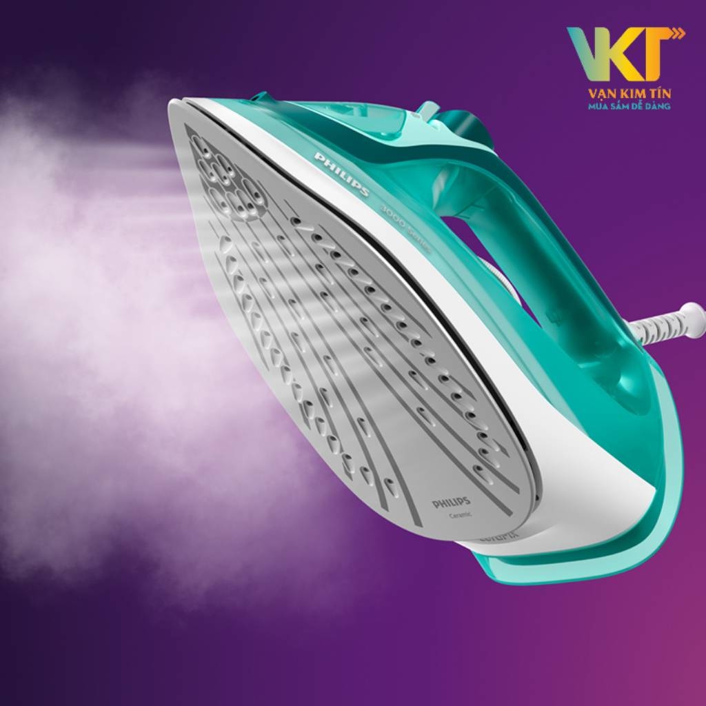 Bàn ủi hơi nước Philips DST3030/70 nhỏ gọn với màu Xanh ngọc đẹp mắt, ngăn chứa nước 300ml cùng mặt đế Ceramic chống dính giúp ủi mượt mà hơn, không gây trầy xước vải và dễ dàng vệ sinh, chiếc bàn ủi Philips đến từ thương hiệu Hà Lan này sẽ là một lựa chọn đáng cân nhắc cho gia đình bạn.