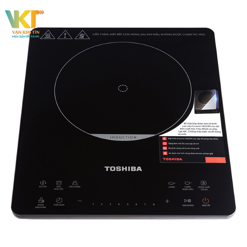 Bếp điện từ Toshiba sở hữu thiết kế gọn đẹp, sang trọng, 1 vùng nấu, dễ dàng đặt trong căn bếp, trên bàn ăn hoặc có thể mang theo trong các chuyến dã ngoại để nấu ăn tiện lợi hơn. Bếp có 6 chế độ nấu được cài đặt sẵn cùng công suất mạnh mẽ 2000W cho khả năng gia nhiệt nhanh, thức ăn chín mau, tiết kiệm điện năng hiệu quả.