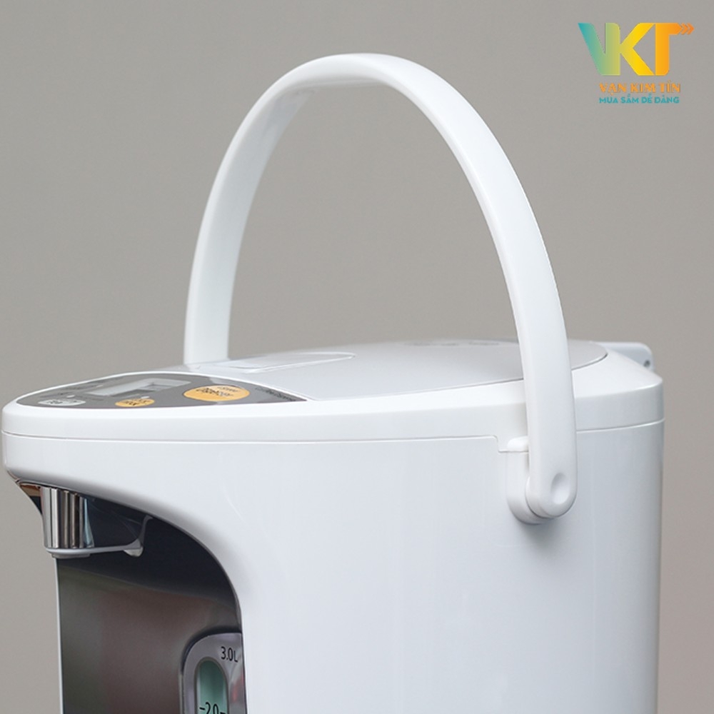 Bình thủy điện Panasonic có thiết kế tiện dụng và kiểu dáng gọn gàng, chất liệu vỏ ngoài bền tốt, ít bám bụi và an toàn trong quá trình sử dụng, có quai xách tay rất tiện lợi.