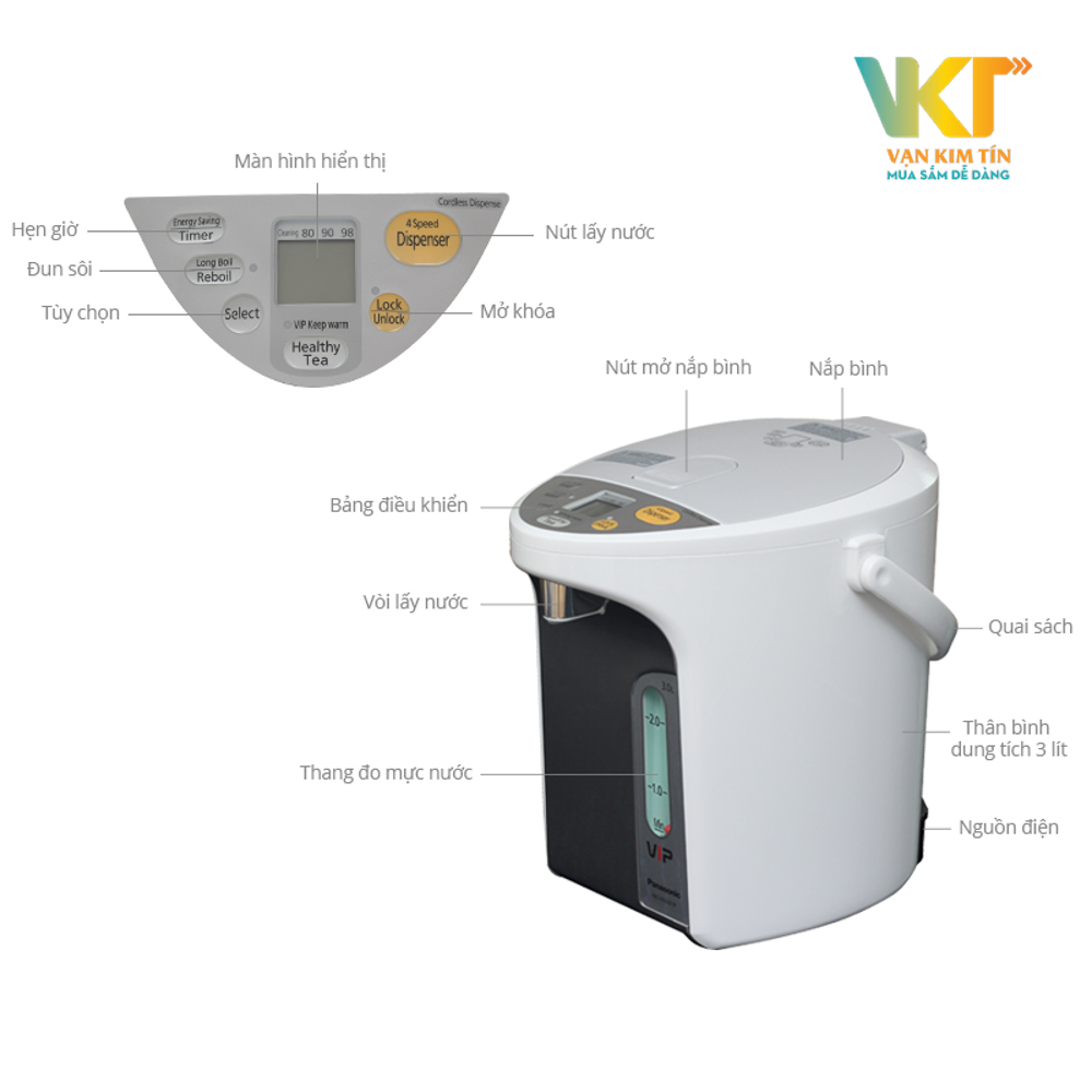 Bình thủy điện Panasonic NC-HU301PHSY đến từ thương hiệu Panasonic nổi tiếng Nhật Bản, sản xuất tại Thái Lan, chất lượng tốt, sử dụng bền lâu, giá tốt, là sản phẩm thiết bị nhà bếp hoàn hảo cho người tiêu dùng Việt.