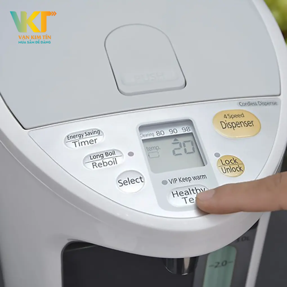 Bình thủy điện Panasonic NC-HU301PZSY 3 lít được trang bị màn hình LED hiển thị nhiệt độ rất tiện lợi và các phím điều khiển điện tử rất nhẹ và dễ bấm.