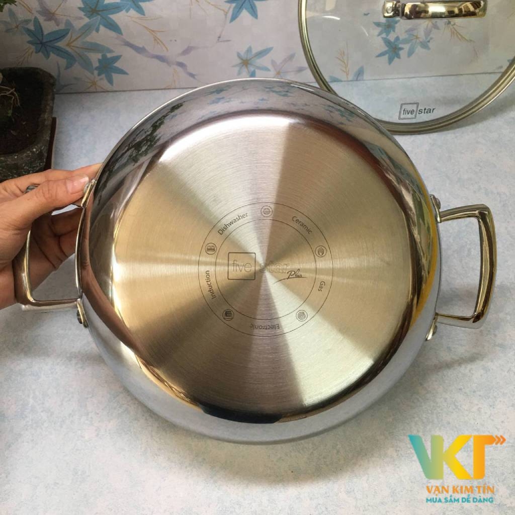 Chảo 2 quai Fivestar sâu lòng Blackcube 24cm có độ bền cao, sử dụng được trong thời gian dài nhờ được chế tạo từ 3 lớp đáy dày chắc chắn (inox 430 – nhôm – inox 430). Đặc tính của inox là ít phản ứng với thức ăn, an toàn sức khỏe, đặc tính của nhôm là hấp thu nhiệt tốt, tỏa nhiệt đều, nấu thức ăn chín nhanh, tiết kiệm năng lượng tối ưu.