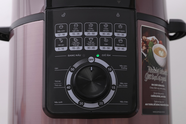 Tùy vào từng loại sản phẩm, nồi áp suất trang bị bảng điều khiển khác nhau. Nhìn chung, nồi có 3 dạng bảng điều khiển phổ biến là núm vặn, nút nhấn điện tử và cảm ứng.