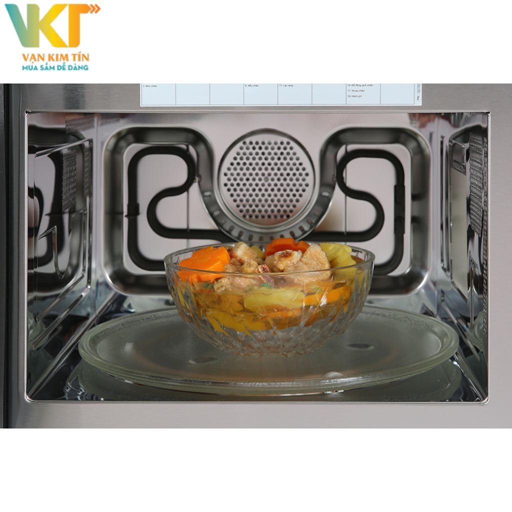 - Mức nấu kết hợp 5: Chức năng Vi sóng 250W kết hợp Nướng 1000W. Phù hợp để làm nóng và làm giòn vỏ nhanh các món ăn đã được làm chín trước đó như bánh mỳ, khoai tây chiên…