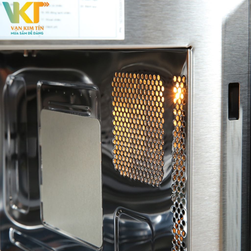 Cửa lò bằng chất liệu kính cao cấp, chịu nhiệt tốt, hạn chế thất thoát nhiệt. Khoang lò bằng thép không gỉ sáng bóng, chống gỉ sét, dễ vệ sinh, loại bỏ những vết dầu mỡ một cách đơn giản. Ngoài ra, bạn sẽ hoàn toàn yên tâm không lo phát sinh chất độc hại ngay cả ở nhiệt độ cao.