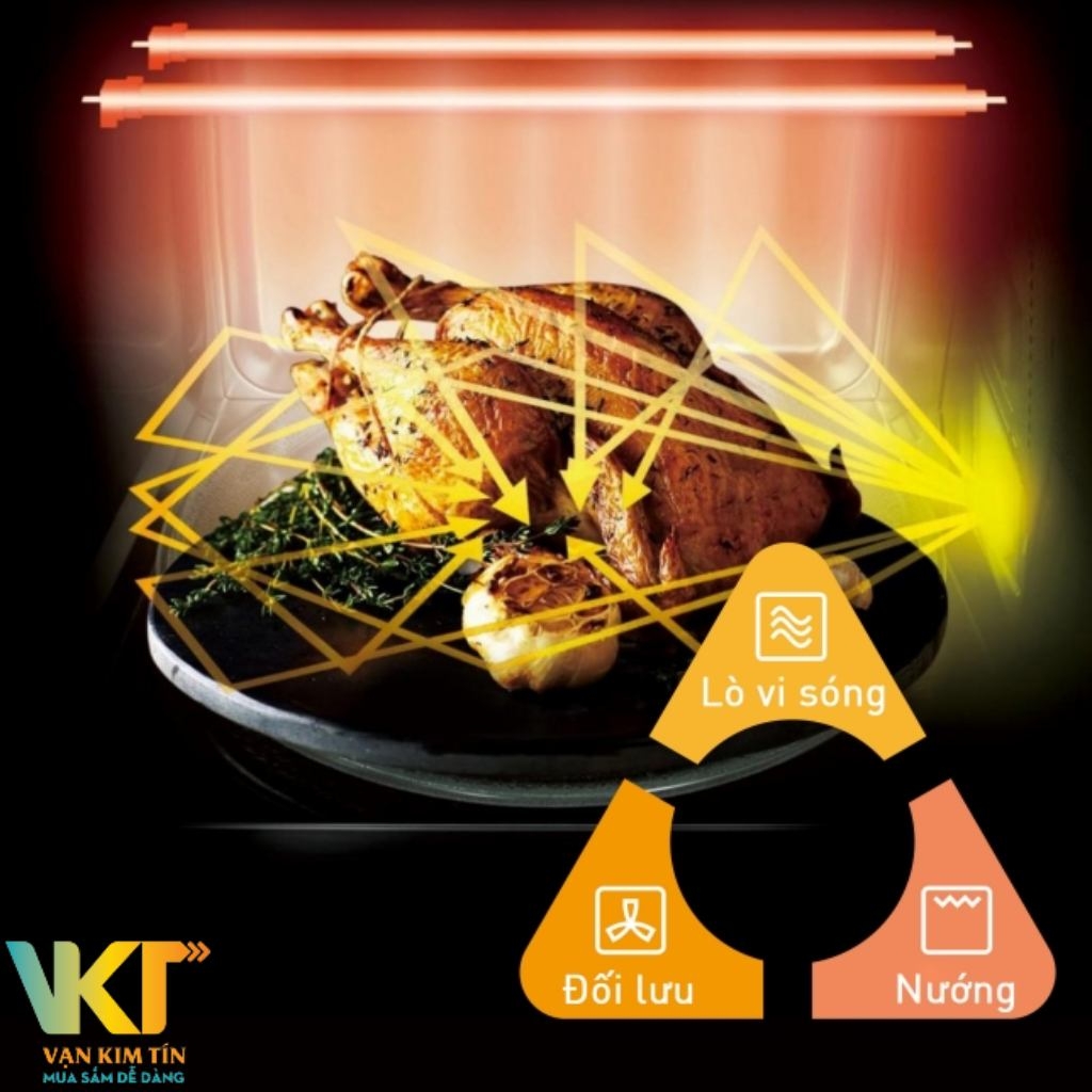 Lò vi sóng có nướng Panasonic NN-CT66MBYUE sở hữu quạt đối lưu cho nhiệt độ tản đều khắp lò, món ăn chín nhanh, chín đều và ngon hơn.