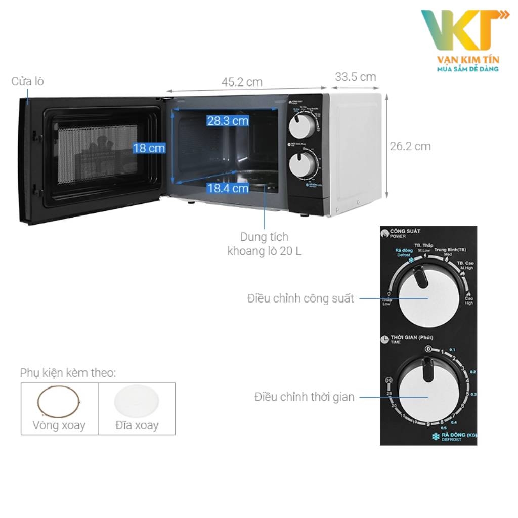 Bạn có thể tùy chỉnh 1 trong 3 chức năng của lò là nấu, hâm nóng và rã đông với 6 mức công suất phù hợp, tối đa là 700 W, đáp ứng việc hâm nóng một cách nhanh chóng, tiết kiệm được điện năng tiêu thụ, giảm chi phí sinh hoạt cho gia đình.