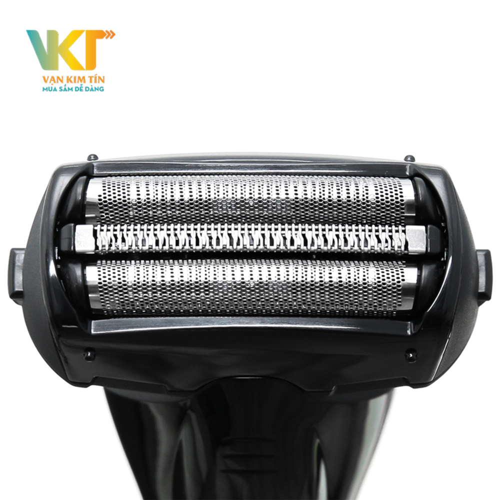Máy cạo râu với hệ thống 3 lưỡi cạo, lưỡi cắt hình cung với các lá cắt bên ngoài hình tròn giúp tiếp cận mọi góc cạnh trên da mặt, cạo thật sát, thật sạch mà an toàn trên da.