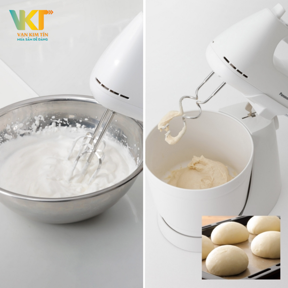 Máy đánh trứng Panasonic đi kèm 2 cây đánh trứng và 2 cây nhào bột được làm bằng chất liệu thép không gỉ chắc chắn, vệ sinh dễ dàng và an toàn cho sức khỏe.