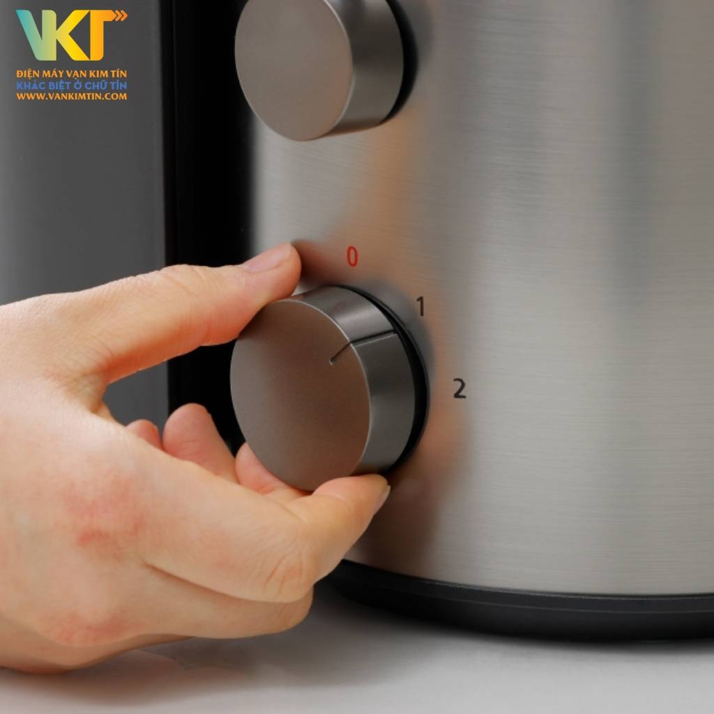 Máy ép MJ-CB800SRA hoạt động với công suất tối đa 320W, đủ mạnh để xử lý đa dạng các loại trái cây và rau củ. Điểm nổi bật của sản phẩm này là 2 tốc độ ép, giúp người dùng dễ dàng có được lựa chọn phù hợp. Tốc độ 1 của máy rất thích hợp cho các loại trái cây mềm như dưa hấu, cam, hoặc rau xanh. Tốc độ 2 dành riêng cho các loại nguyên liệu cứng như cà rốt, táo, hoặc củ dền. Thiết kế nút xoay điều khiển đơn giản, ngay cả người lớn tuổi cũng có thể sử dụng máy một cách dễ dàng, giúp các món nước ép giữ lại hương vị tự nhiên cùng các dưỡng chất quan trọng.