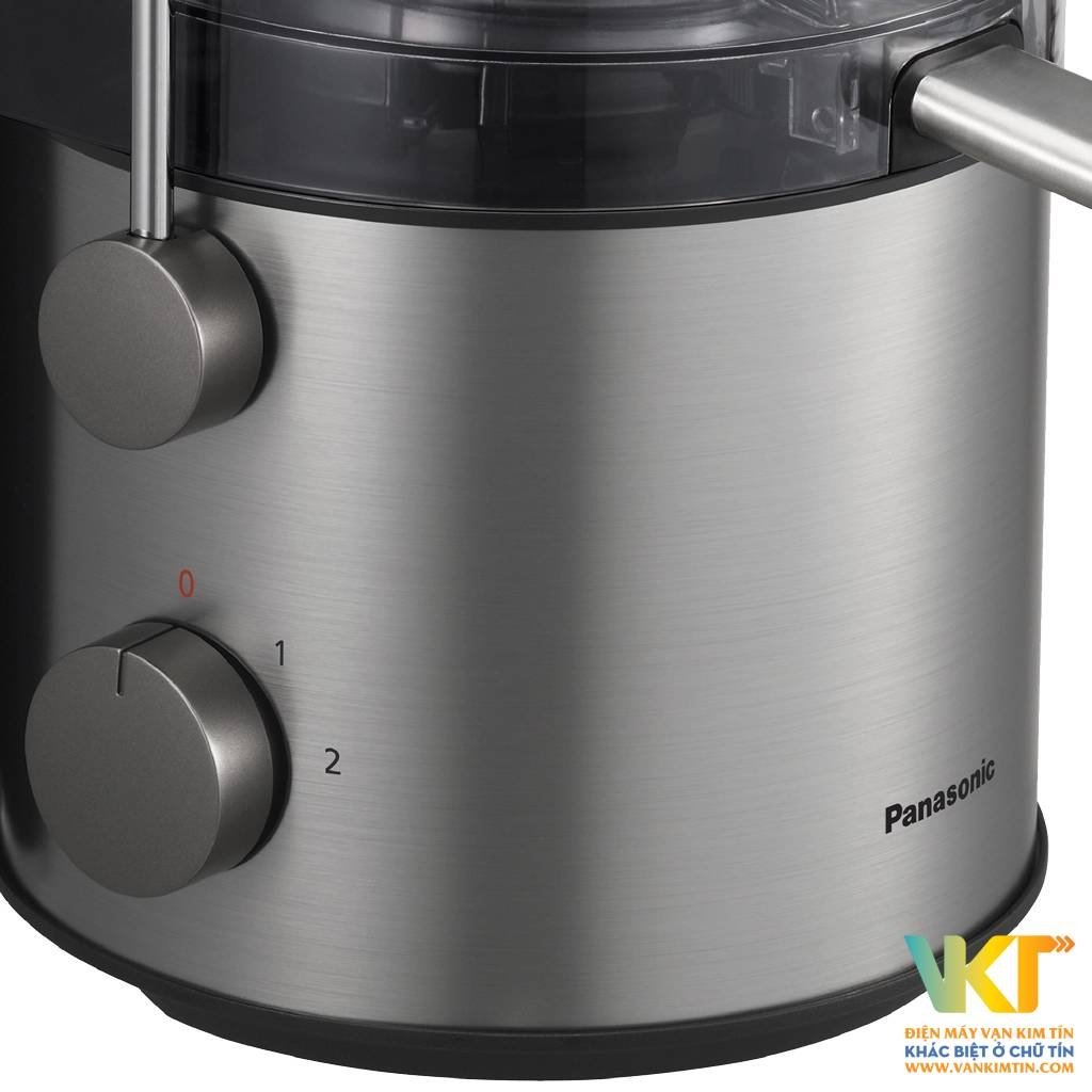Máy ép trái cây Panasonic sở hữu thiết kế hiện đại với gam màu đen xám trang nhã, phù hợp với hầu hết các không gian. Thân máy được chế tạo từ kim loại cao cấp, mang lại vẻ ngoài sáng bóng và sang trọng. Điểm nhấn của thiết kế nằm ở cối đựng nước ép dung tích 1.5 lít và cốc đựng bã lớn 2 lít, cả hai đều được làm từ nhựa an toàn và dễ dàng vệ sinh.