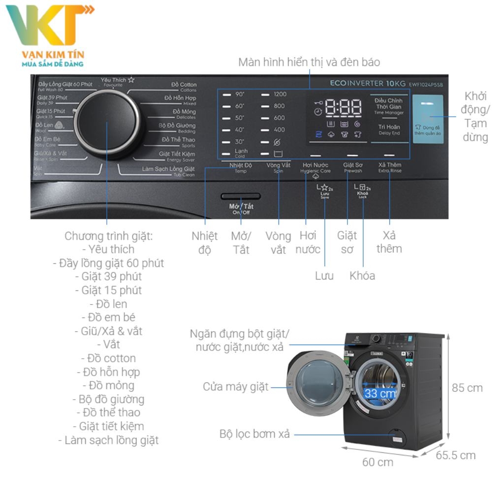 - Chương trình giặt 39 phút: Phù hợp để giặt đồ bẩn hằng ngày.