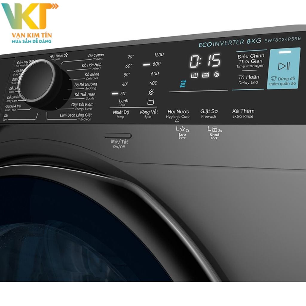 Máy giặt Electrolux Inverter 8 kg EWF8024P5SB là sản phẩm có khối lượng giặt 8 kg, đáp ứng tốt nhu cầu sử dụng cho gia đình có từ 3 - 5 thành viên với các chức năng hiện đại và tiện lợi như tiết kiệm điện, giặt bằng hơi nước, giữ màu quần áo bền lâu, dễ dàng thêm quần áo khi đang giặt, tích hợp 15 chương trình,...