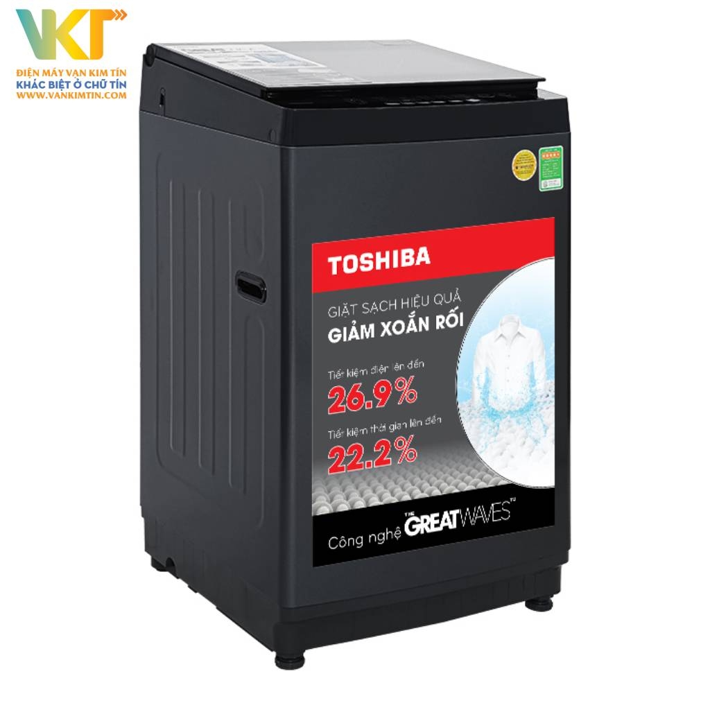 Máy giặt Toshiba có khối lượng giặt 9 kg, phù hợp cho gia đình từ 3 - 5 người. Sản phẩm được thiết kế 8 chương trình giặt, bao gồm: giặt thông thường, giặt chăn màn, giặt quần jean, giặt quần áo dày, quần áo rộng, giặt siêu tốc, chương trình giặt tẩy, vệ sinh lồng giặt sạch sẽ.