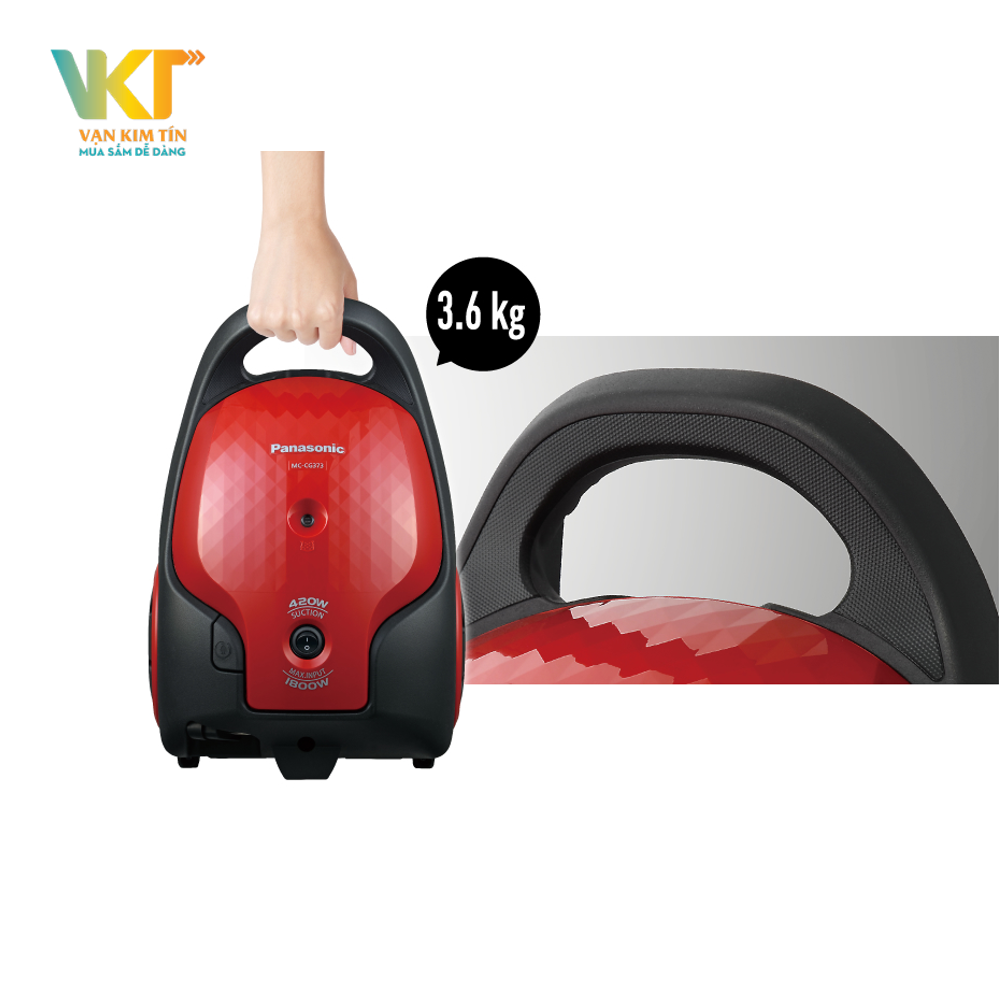 Máy hút bụi Panasonic MC-CG373RN46 có trọng lượng chỉ 3.6kg cùng tay cầm lớn phía trước giúp cho bạn dễ dàng mang theo máy hút bụi giữa các phòng và giữa các tầng.