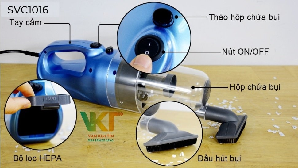 Máy hút bụi dùng bộ lọc Hepa lọc thải tốt đến 99.9% bụi bẩn, vi khuẩn, trả lại không khí sạch thoáng cho không gian dùng.