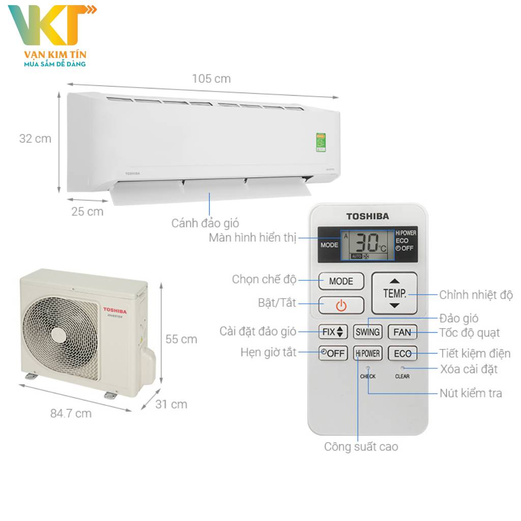 Máy lạnh Toshiba Inverter 2.5 HP RAS-H24S4KCV2G-V kiểu dáng đơn giản, công suất lớn