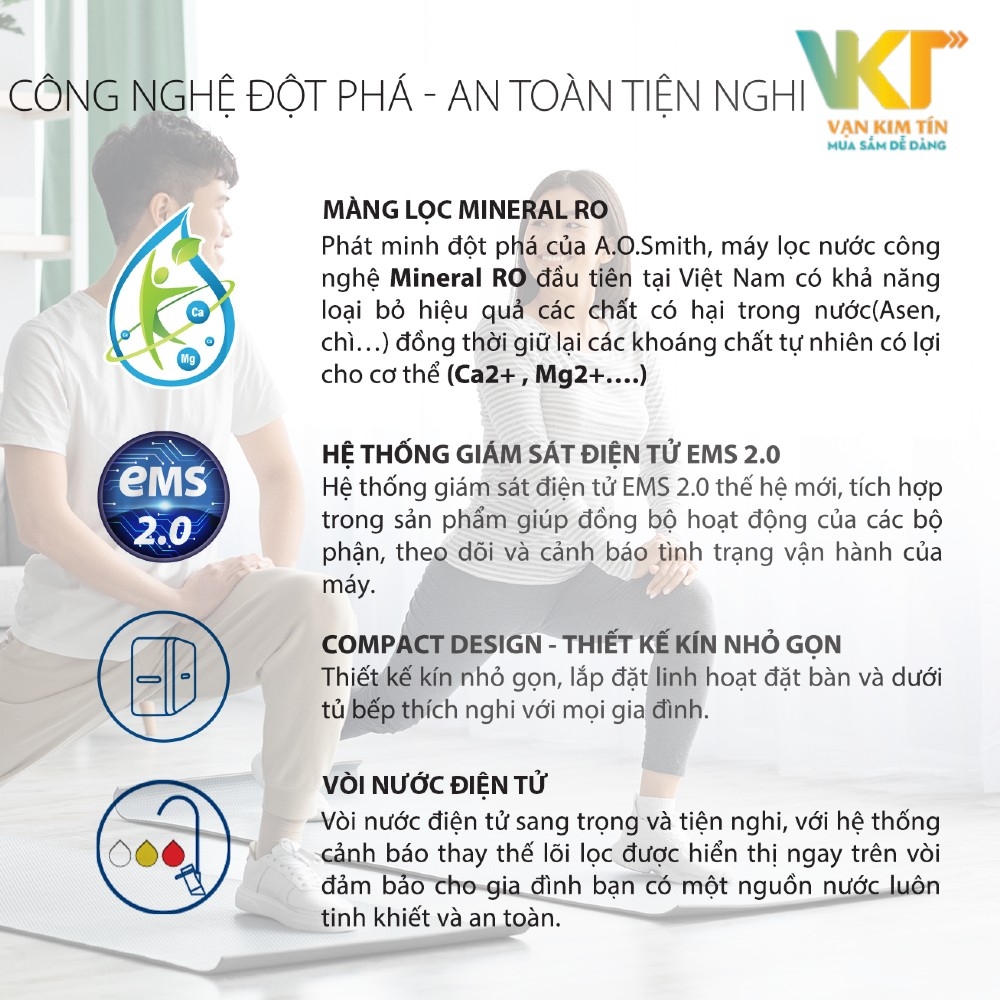 Phát minh đột phá của A.O.Smith, máy lọc nước công nghệ RO đầu tiên tại Việt Nam có khả năng loại bỏ hiệu quả các chất có hại trong nước (Asen, Chì, Thủy Ngân…) đồng thời giữ lại các khoáng chất tự nhiên có lợi cho cơ thể.