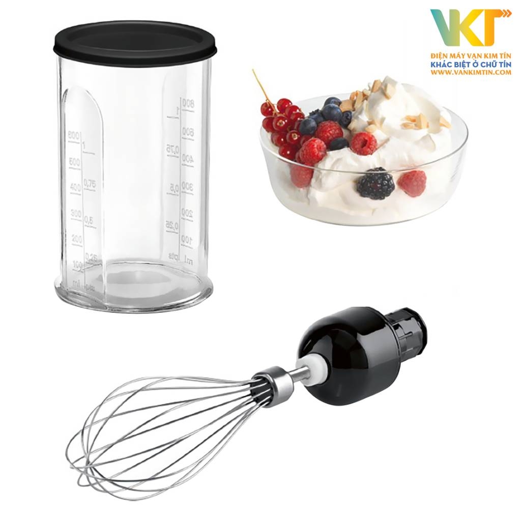 Đi kèm với máy HMH.MSM2650B là que đánh trứng bằng thép không gỉ, có thể dễ dàng đánh tan lòng trắng trứng, đánh bông kem tươi hay trộn đều các loại bột bánh. Cối xay thịt với dung tích 0.33 lít cùng khoá nắp chống tràn giúp việc nghiền nát thịt trở nên dễ dàng và nhanh hơn, từ đó việc chuẩn bị các món ăn như thịt viên hay xúc xích không còn mất nhiều thời gian.