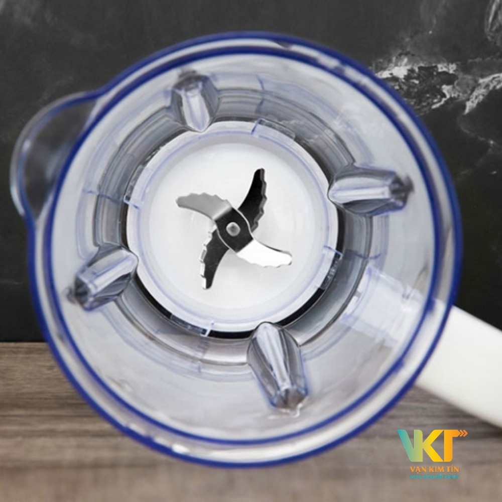 Máy xay sinh tố tích hợp lưỡi dao 6 cánh bền bỉ, cứng cáp. Lưỡi dao 6 cánh được thiết kế để thực hiện 3 nhiệm vụ hiệu quả. Đó là lưỡi răng cưa lớn dùng để xay đồ cứng và nhiều xơ. Lưỡi dao sắc dùng để xay mịn và trộn thực phẩm đều lên. Lưỡi cùn giúp ổn định dòng xoáy nhào trộn thực phẩm một cách nhanh nhất. Chất liệu lưỡi dao được làm từ vật liệu thép không gỉ SUS 301. Đặc tính của thép là có độ bền và sắc bén cao giúp xay nhuyễn mọi loại rau củ quả.