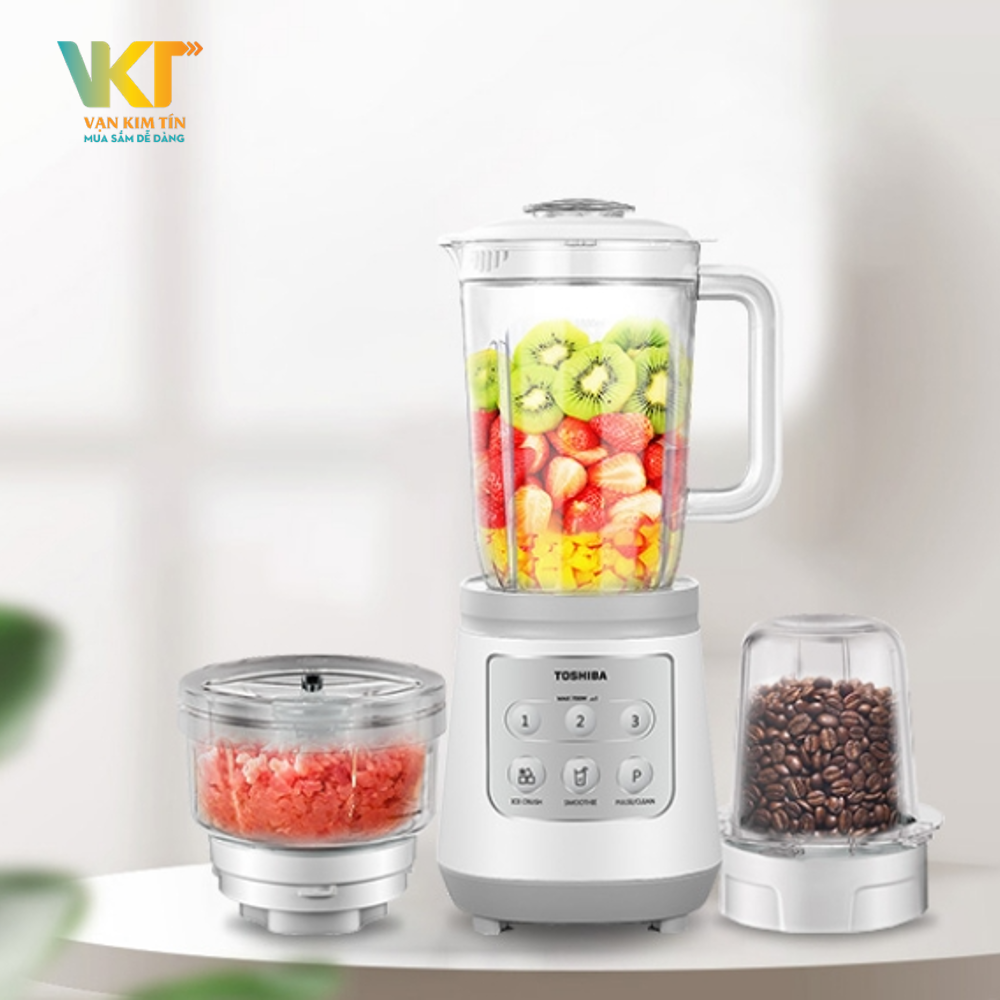 Máy xay sinh tố Toshiba có thiết kế khá đơn giản gồm thân máy và 2 cối xay với các chức năng xay các loại thực phẩm, xay hạt, xay đá. Kiểu dáng gọn gàng, màu sắc trắng trang nhã, thanh lịch thích hợp sử dụng ở mọi không gian nấu nướng như trong không gian bếp gia đình, nhà hàng, quán ăn,... Sở hữu ngay món điện gia dụng thiết yếu này ngay để công việc nấu nướng của bạn trở nên dễ dàng hơn.