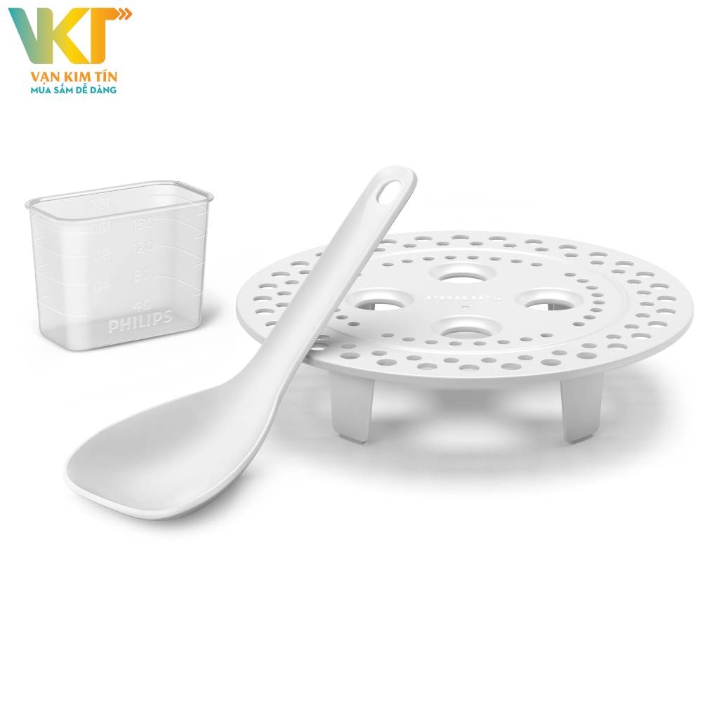 Bên cạnh đó, khi mua nồi áp suất đa năng Philips HD2237/66 bạn sẽ nhận được các phụ kiện kèm theo như: xửng hấp, cốc đong, muỗng canh.