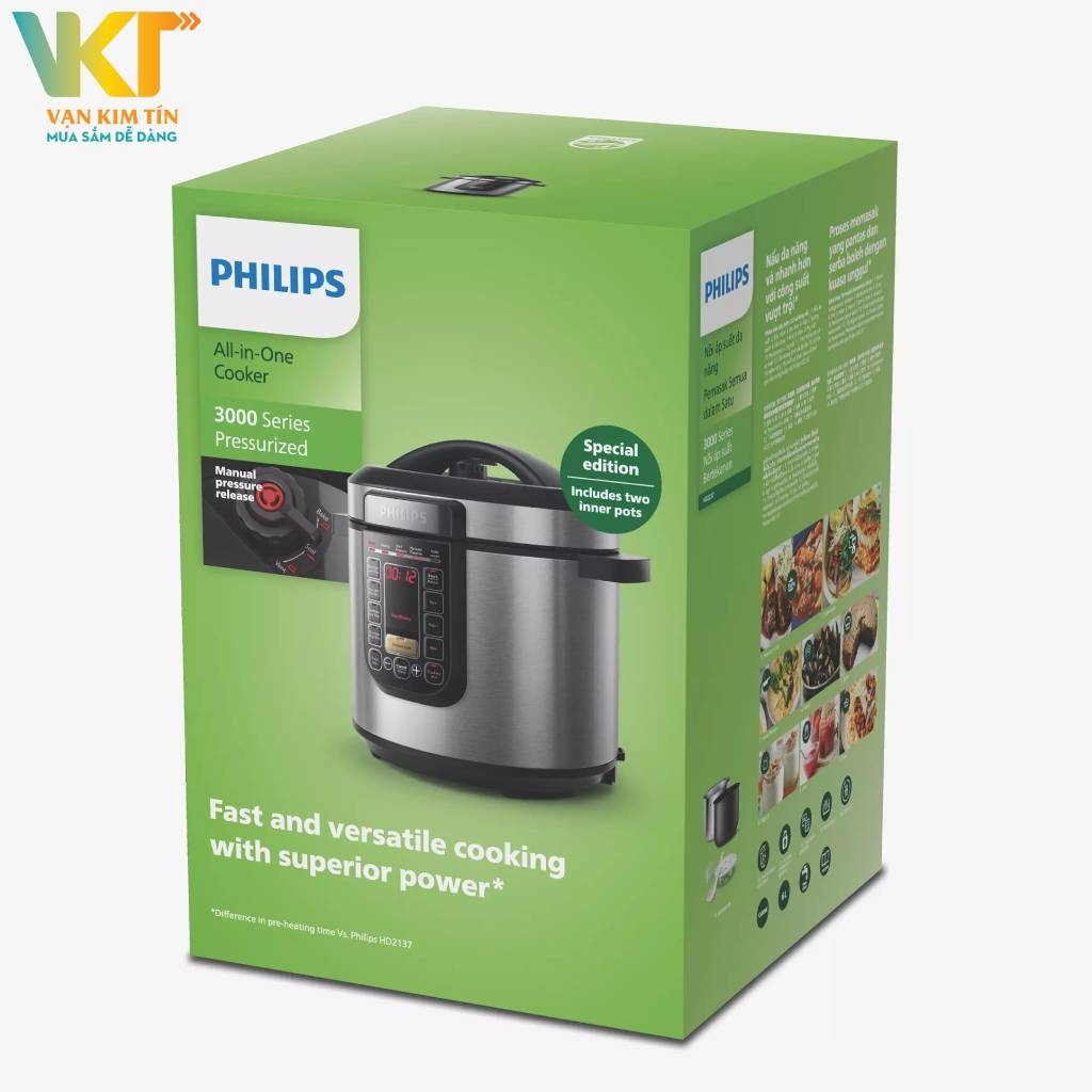 Nồi áp suất đa năng Philips HD2237/66 là sản phẩm hữu ích dành cho những người nội trợ bận rộn, không có nhiều thời gian nấu nướng nhưng vẫn muốn mang đến cho gia đình những bữa ăn thơm ngon, đầy dinh dưỡng với nhiều công nghệ đi kèm như: tự động giữ ấm sau khi nấu, hẹn giờ nấu 24 giờ,... cùng dung tích 6 lít có thể nấu được gà nguyên con khoảng 1.2 - 1.5 kg, thích hợp sử dụng nấu ăn cho gia đình 4 - 6 người, là sản phẩm gia dụng đắc lực cho mọi căn bếp gia đình.