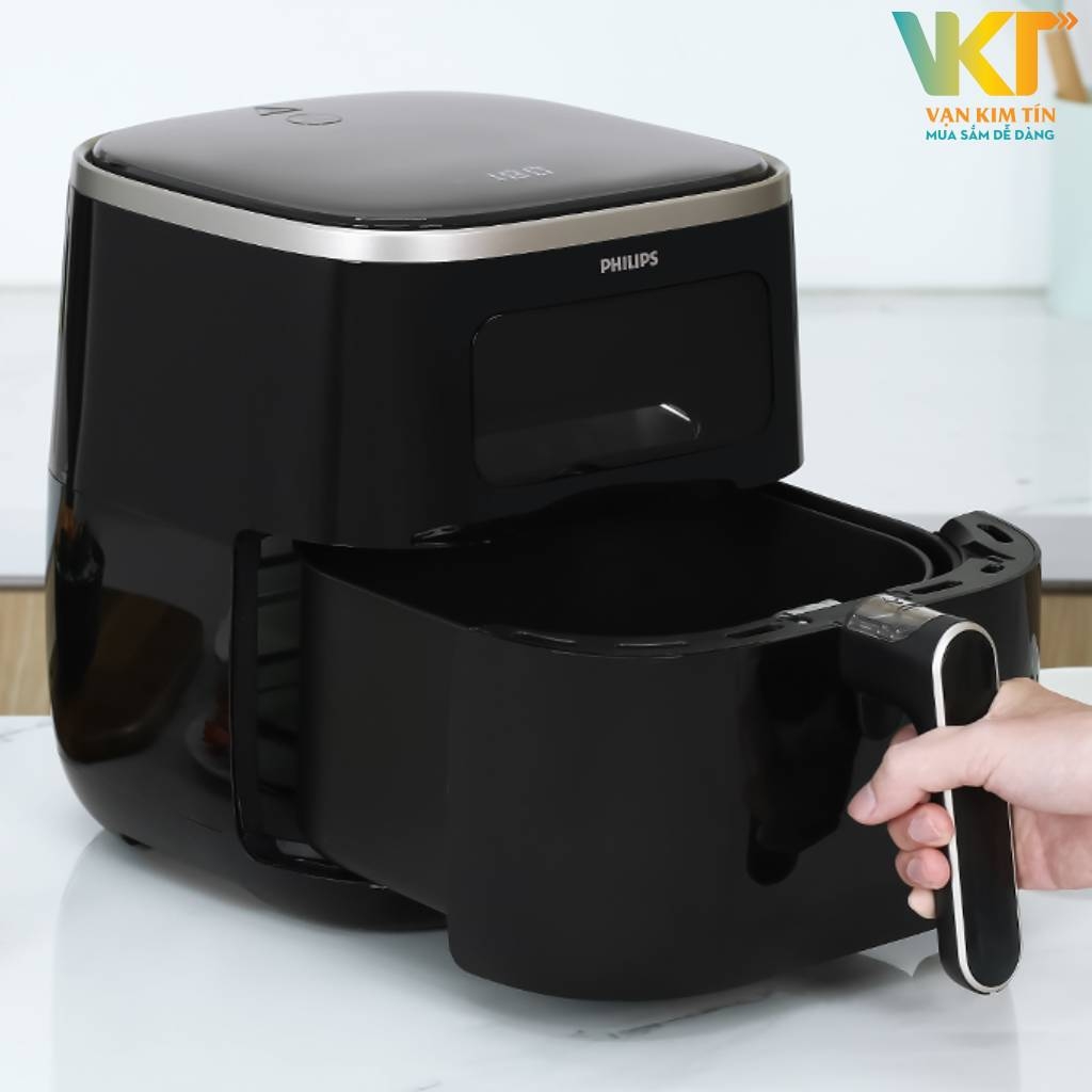 Nồi chiên không dầu Philips sở hữu thiết kế nhỏ gọn cùng các đường nét bo cong mền mại, vỏ ngoài bằng nhựa cách nhiệt bền đẹp, màu đen sang trọng, dễ dàng vệ sinh sau khi sử dụng, phù hợp với mọi không gian nhà bếp khác nhau.