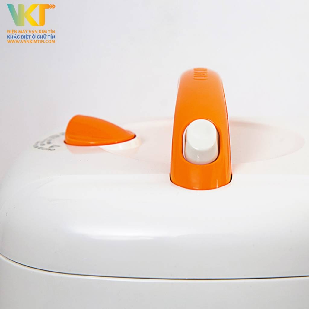 Nồi cơm điện Cuckoo nhỏ gọn, nặng khoảng 3kg nên người dùng có thể đặt ở bất cứ đâu trong khu bếp. Đặc biệt thiết kế màu sắc trắng kết hợp với cam tươi tạo nên sự mới mẻ, hiện đại cho khu vực nấu ăn.
