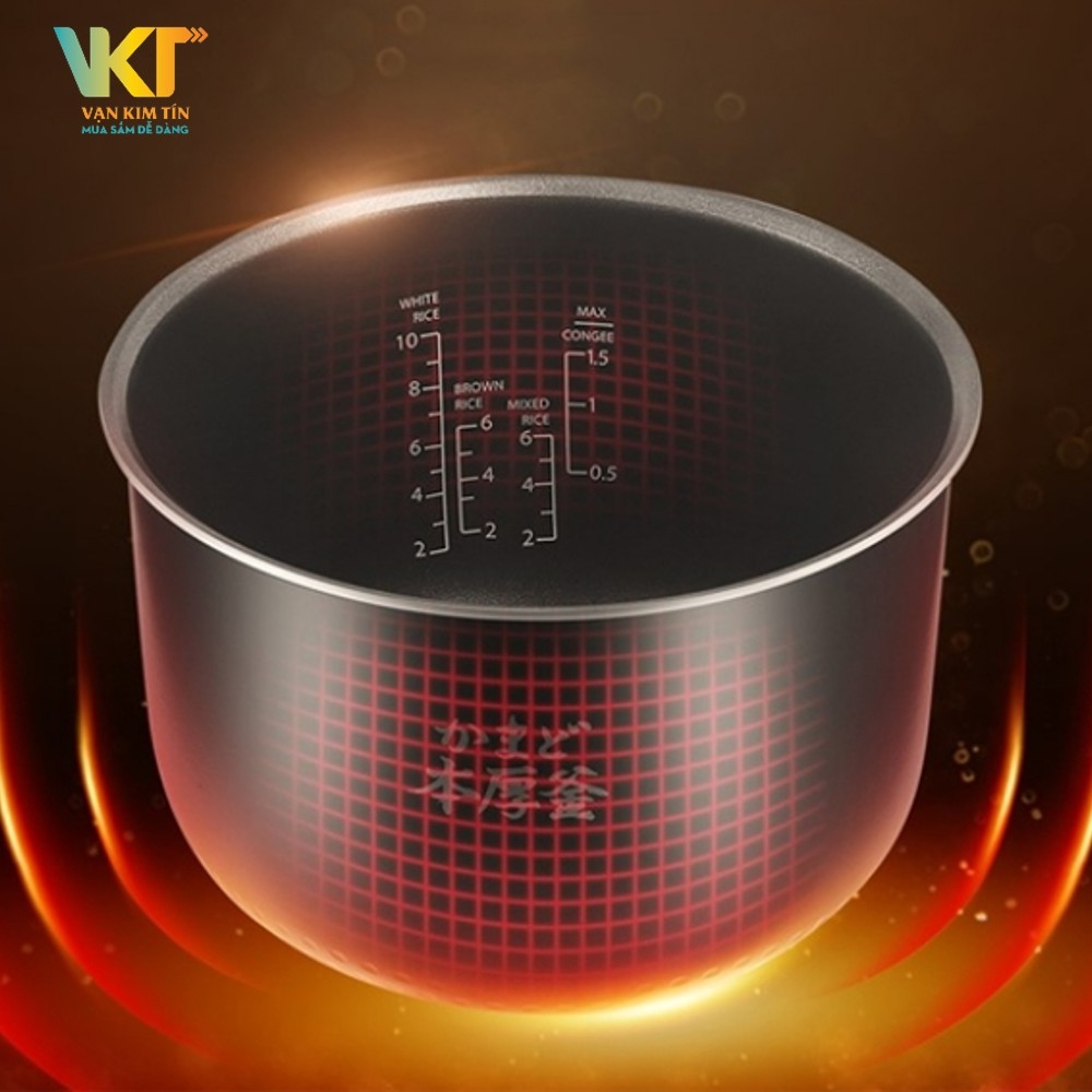 Đồng thời, nồi trang bị cả mâm nhiệt có kích thước lớn. Trong suốt quá trình nấu, nhiệt độ cao sẽ giúp cho nước sôi mạnh, các hạt gạo sẽ được nhào trộn đồng đều giúp cơm nấu chín đều, thơm ngon.