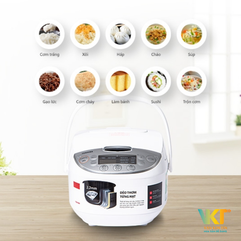 Nồi cơm điện Toshiba RC-18DH2PV(W) tích hợp 11 chương trình nấu đa dạng, đáp ứng nhu cầu nấu nướng tốt nhất bao gồm: nấu nhanh, cơm trộn, cháo, cơm trắng, gạo lức, xôi, cơm cháy, canh súp, làm bánh, nấu cơm sushi, hấp,.. cho bữa ăn của gia đình bạn thêm phần phong phú, là sản phẩm có thể thay thế các loại nồi khác nhau, giúp bạn tiết kiệm chi phí và không gian bếp.
