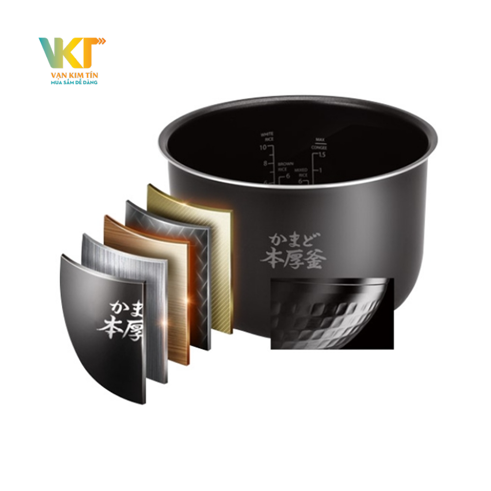 Với thiết kế đáy nồi dày tới 2.2mm theo dạng tổ ong. Đáy nồi cơm điện có cấu tạo gồm 5 lớp phủ bố trí hợp lý giúp nâng cao khả năng hấp thu và lan tỏa nhiệt đồng đều ra khắp lòng nồi nhằm giữ nguyên hương vị thơm ngon của từng hạt gạo.