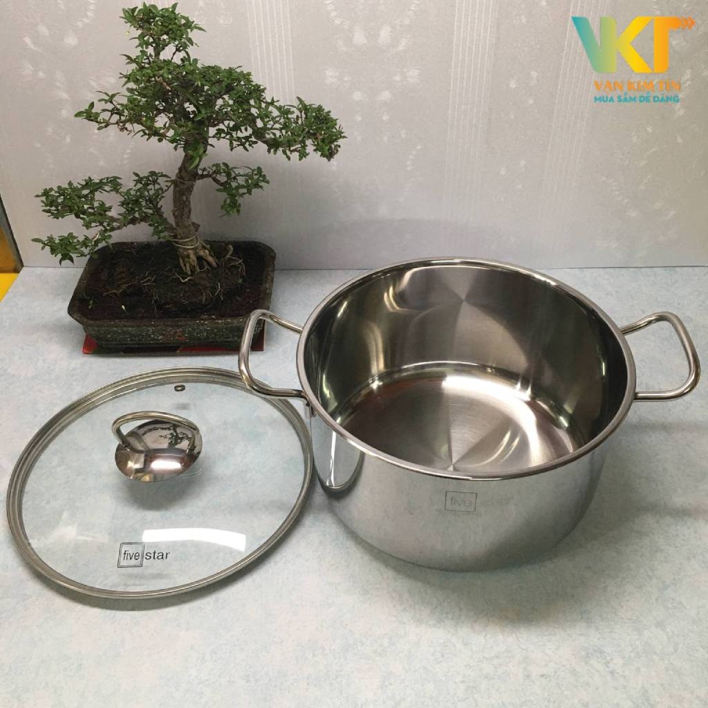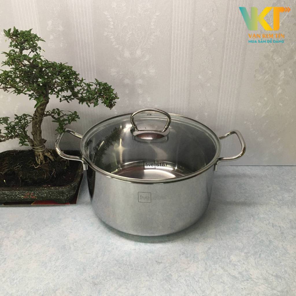 Nồi inox 3 đáy Fivestar FSN nắp kính có kích cỡ đường kính 24cm, bạn có thể luộc gà nguyên con 1.2 - 1.5 kg,... cực kì tiện lợi. Ngoài ra nồi có thể sử dụng để nấu các món kho, nấu canh, nấu mì.