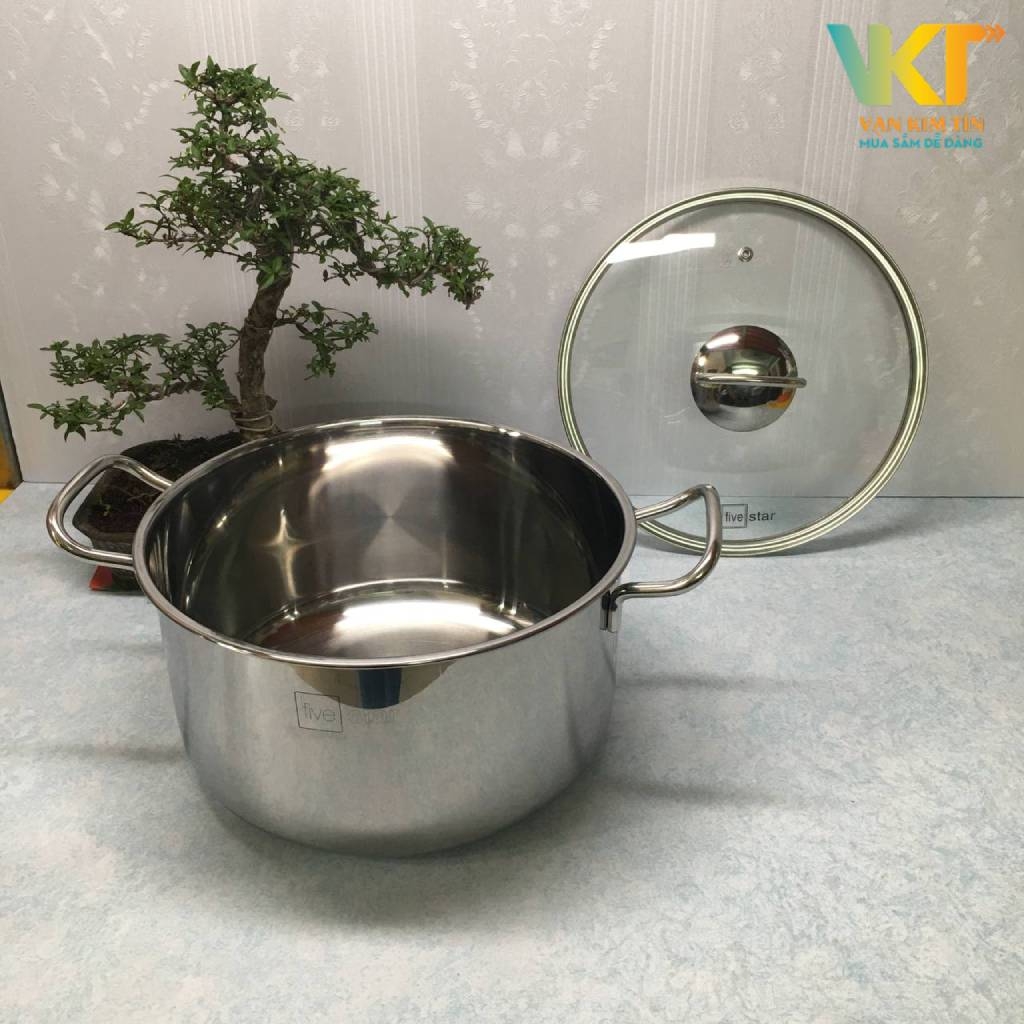 Nồi inox 3 đáy Fivestar FSN 24cm nắp kính là sản phẩm cao cấp đến từ thương hiệu Fivestar nổi tiếng Việt Nam, sản xuất tại Việt Nam. Nồi có thiết kế hiện đại, kích cỡ 24cm được làm từ chất liệu inox cao cấp 430 cho độ bền cao, nắp kính trong suốt dễ dàng quan sát và sử dụng được cho mọi loại bếp nấu hiện nay, kể cả bếp từ, là sản phẩm mà bạn không nên bỏ qua.