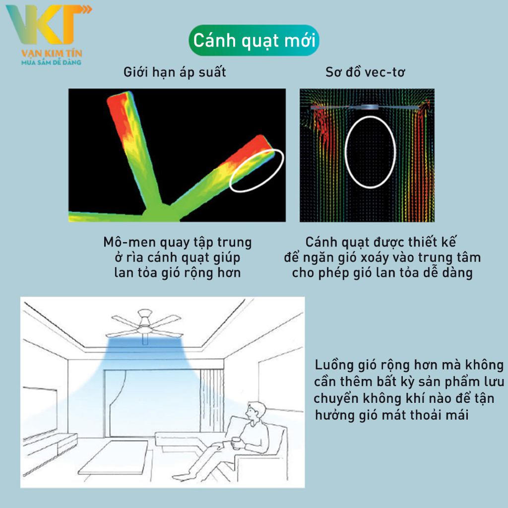 Cánh quạt có hình dạng giống như cánh chim đại bàng tạo ra luồng gió rộng hơn và mạnh hơn. Cánh quạt được làm từ chất liệu ABS-GF cho độ bền cao, không những giúp hoạt động được bền bỉ mà còn rất dễ lau chùi.