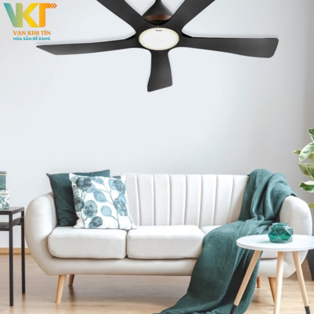 Quạt trần Panasonic có kiểu dáng hiện đại cùng màu đen tinh tế, thiết kế lắp trần không chiếm nhiều diện tích, tăng tính thẩm mỹ cho không gian.