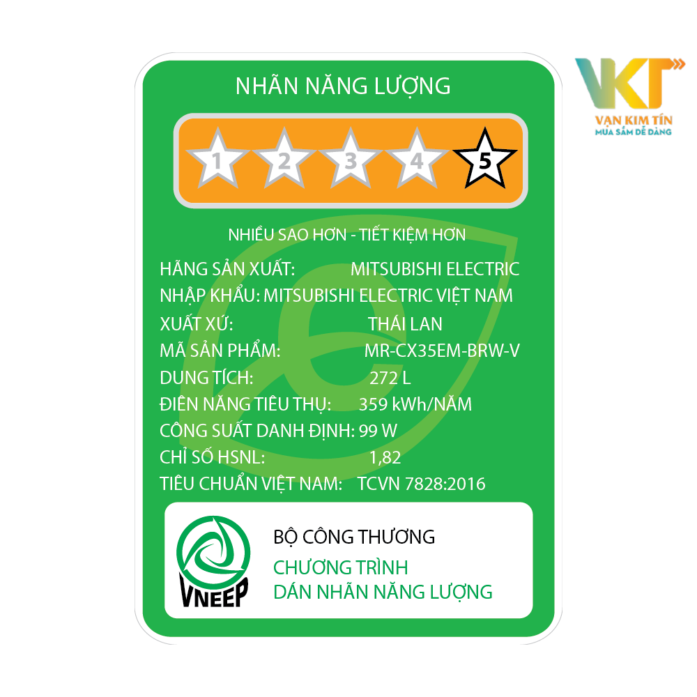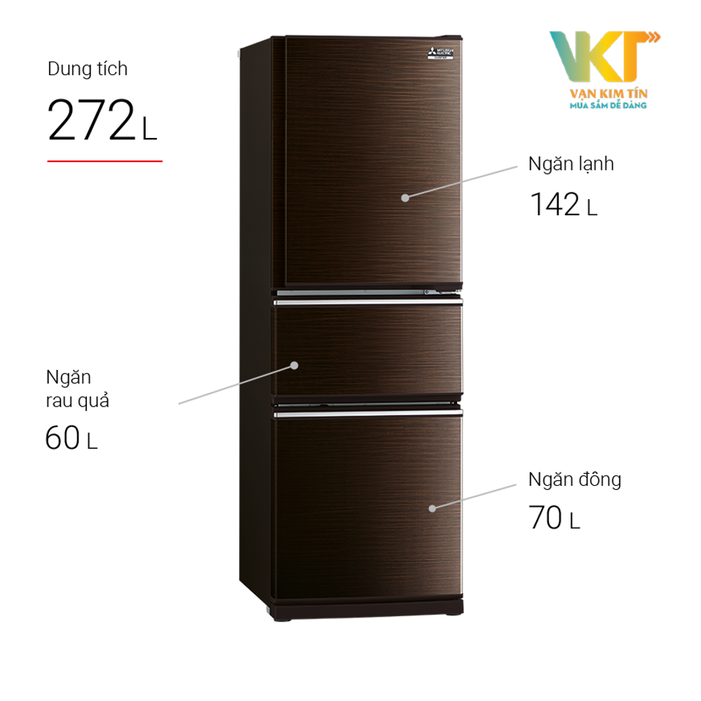 Nếu gia đình bạn trên 5 người hoặc có thói quen trữ nhiều thực phẩm thì chiếc tủ lạnh 3 cửa Mitsubishi MR-CX35EM-BRW 272 lít là một sự lựa chọn lý tưởng. Tủ lạnh sở hữu không gian lưu trữ thực phẩm cực kì rộng rãi, tiện nghi với ngăn rau quả 60L, ngăn lạnh 142L và ngăn đông 70L.