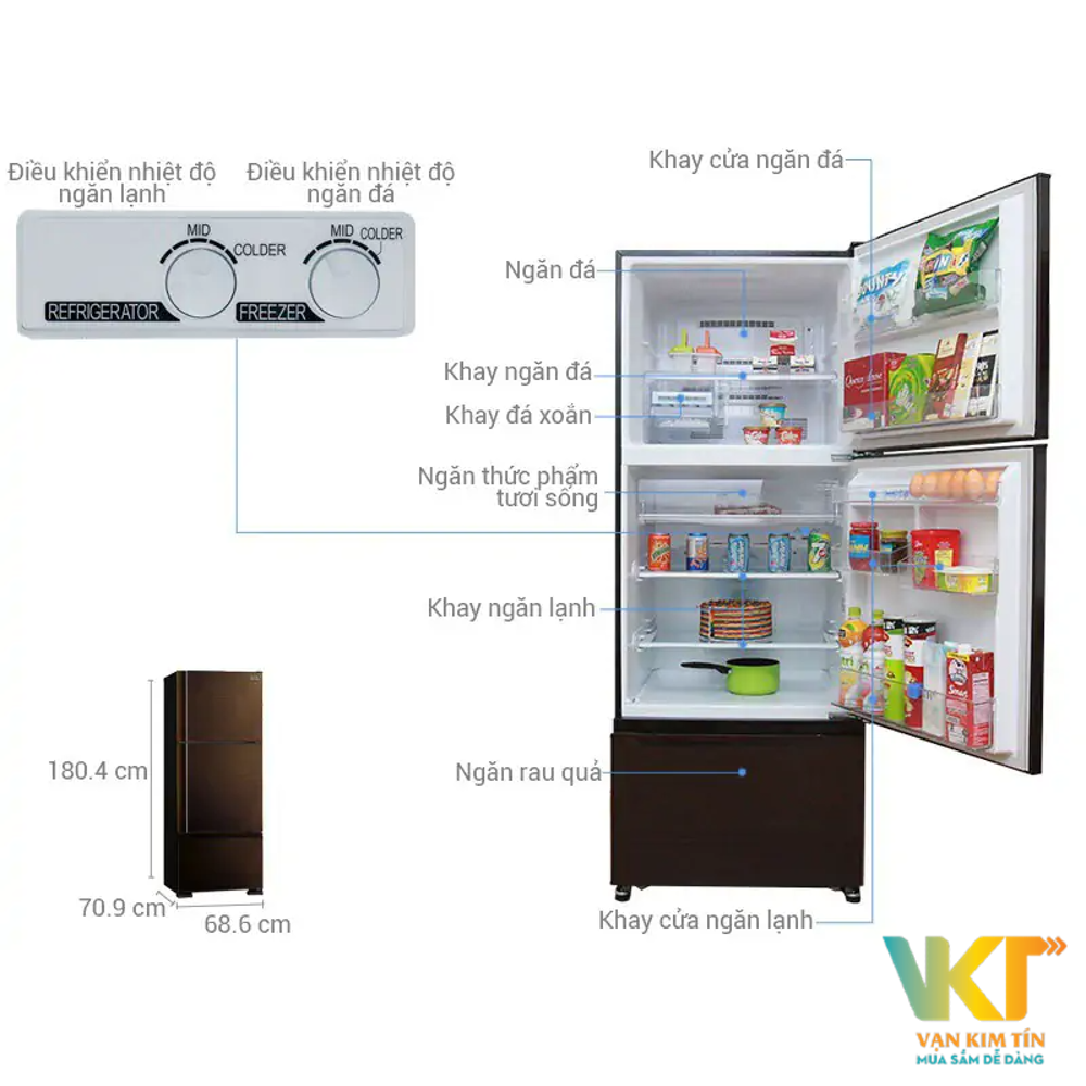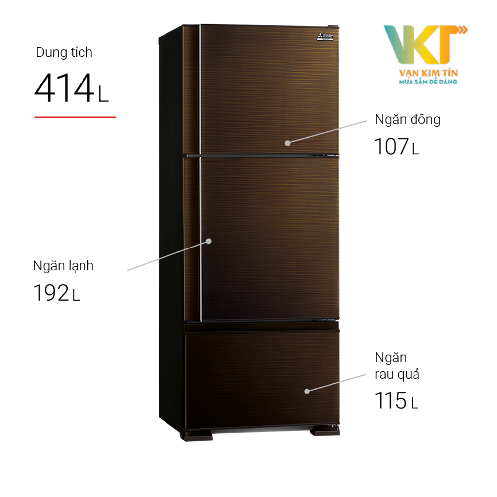 Tủ lạnh 3 cửa Mitsubishi MR-V50ER-BRW có dung tích 414 lít, trong đó dung tích ngăn đá 107 lít, ngăn lạnh 192 lít, ngăn rau 115 lít thích hợp cho gia đình 3 - 5 người. Tủ lạnh thiết kế 3 ngăn riêng biệt với 3 vùng nhiệt độ khác nhau giúp tối ưu hóa việc lưu trữ thực phẩm trong mỗi ngăn và hạn chế tối đa sự lẫn mùi giữa các loại thực phẩm, rau củ quả,...