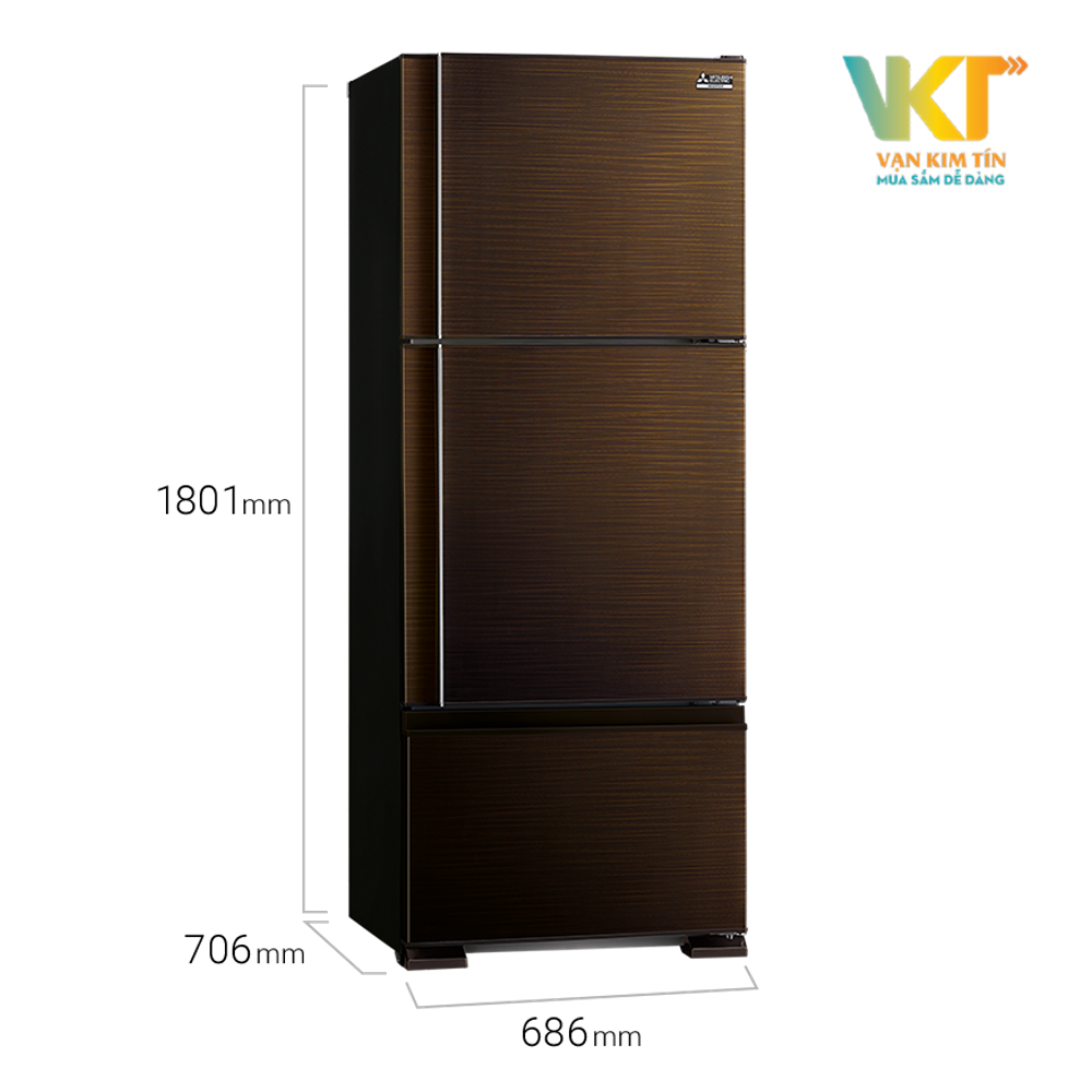 Tủ lạnh Mitsubishi Electric Inverter có thiết kế hiện đại với 3 cửa 3 ngăn riêng biệt bao gồm ngăn đá trên, ngăn lạnh và ngăn rau quả dưới cùng, tiện dụng cho việc sắp xếp thực phẩm. Tủ lạnh có tông màu nâu thể hiện sự sang trọng và tao nhã, tạo điểm nhấn cho căn bếp của bạn.