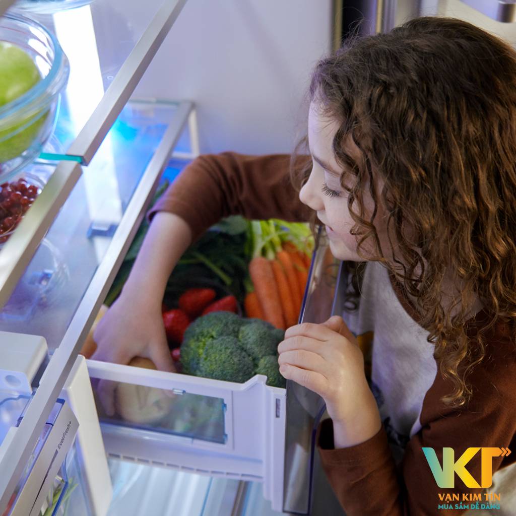 - Ngăn rau củ EverFresh giữ rau củ tươi lâu hơn