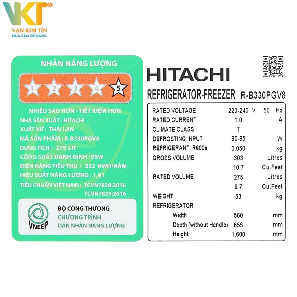 Tủ lạnh Hitachi Inverter 275 lít R-B330PGV8 có dung tích sử dụng 275 lít, phù hợp cho nhu cầu bảo quản thực phẩm của các gia đình có từ 2 - 3 thành viên hoặc có ít thành viên hơn nhưng nhu cầu lưu trữ thực phẩm cao: