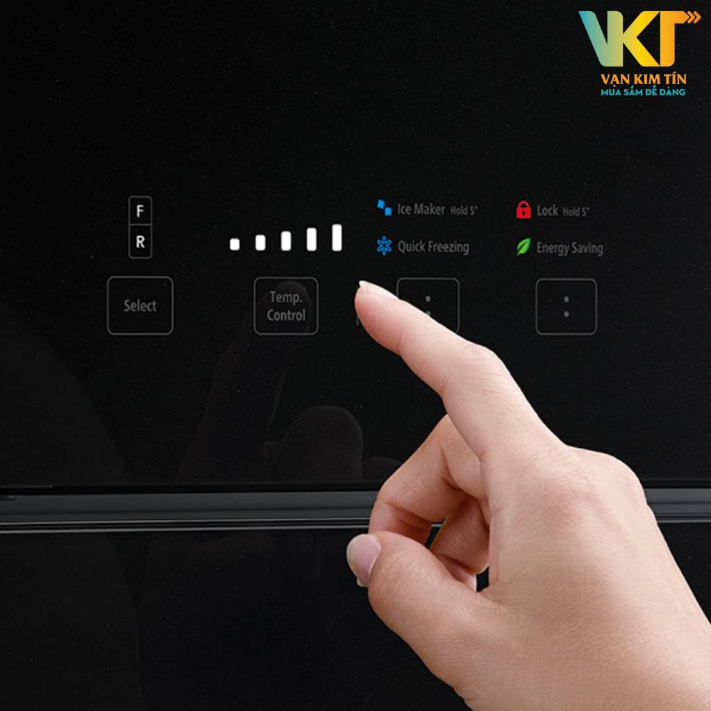 Bảng điều khiển cảm ứng với màn hình hiển thị LED rõ nét được bố trí bên ngoài tủ lạnh giúp người dùng dễ dàng thao tác, điều chỉnh các chế độ một cách nhanh chóng và tiện lợi.