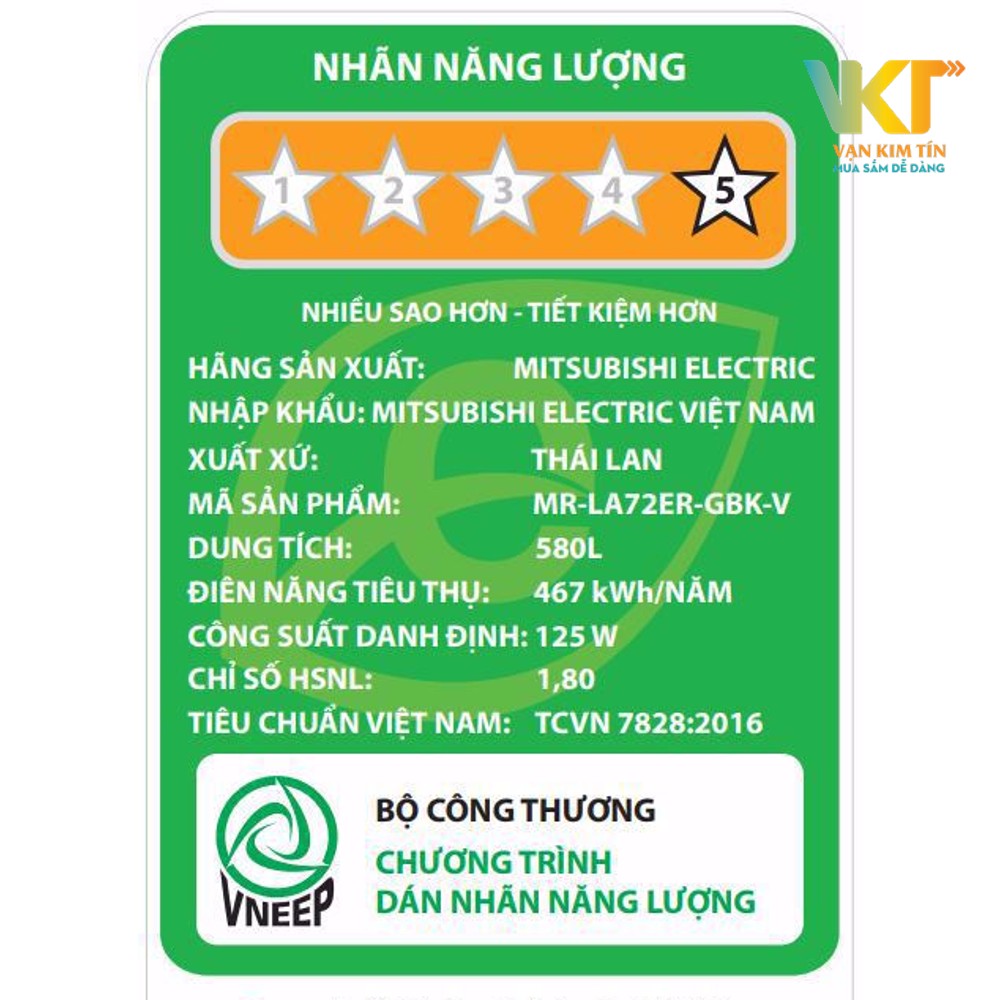 Thông số kỹ thuật Tủ lạnh side by side Mitsubishi MR-LA72ER
