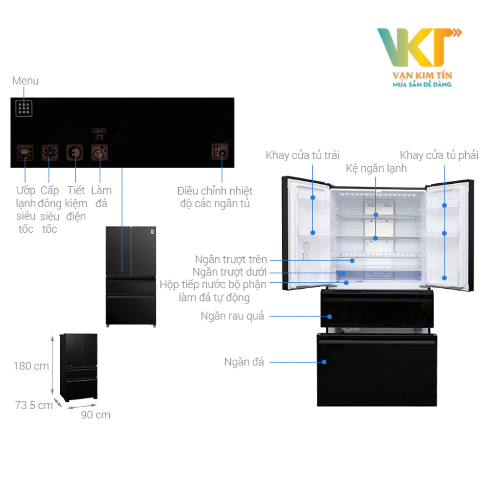 Thông số kỹ thuật Tủ lạnh side by side Mitsubishi MR-LX68EM