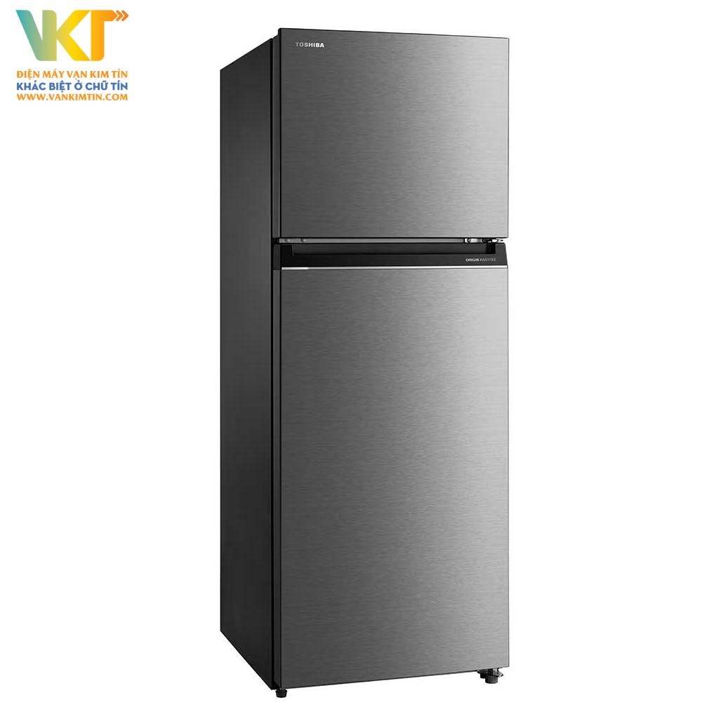 Tủ lạnh Toshiba có kiểu dáng ngăn đá trên truyền thống nhưng vẫn vô cùng ấn tượng với vẻ ngoài sang trọng từ chất liệu thép không gỉ sáng bóng, phù hợp mọi không gian bếp. Cửa tủ được thiết kế theo phong cách tối giản cùng gam màu xám trung tính, tạo nên một không gian hài hòa và ấn tượng.